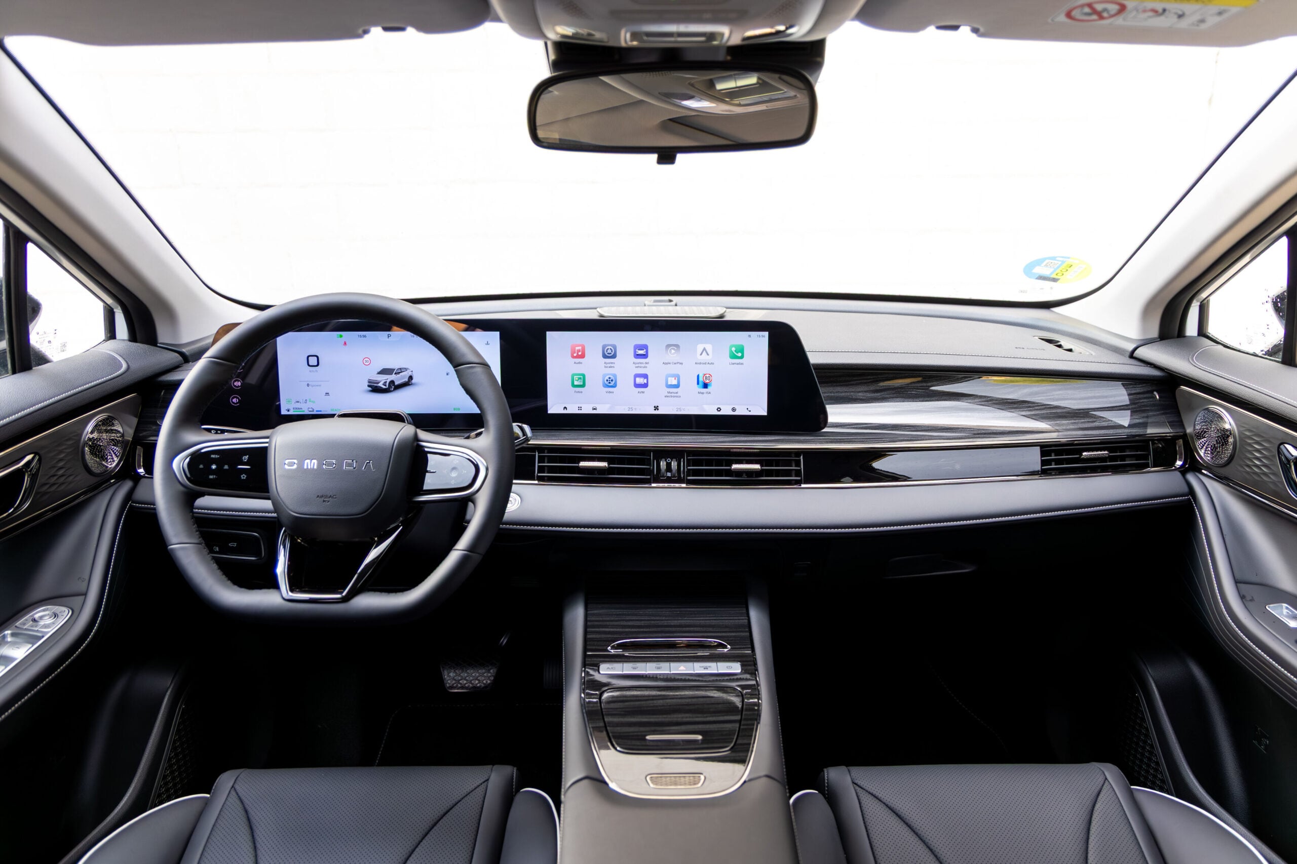 En el interior, el Omoda C5 SHS-H propone un ambiente moderno y bien resuelto, con materiales de buena calidad. Desde la versión de entrada ya incorpora doble pantalla de 12,3”, conectividad inalámbrica con Apple CarPlay y Android Auto, además de puertos USB y tipo C. Asimismo, incluye sistema de audio de 4 parlantes, climatizador bi-zona, volante en eco-cuero con mandos multifunción y llantas de 17”.