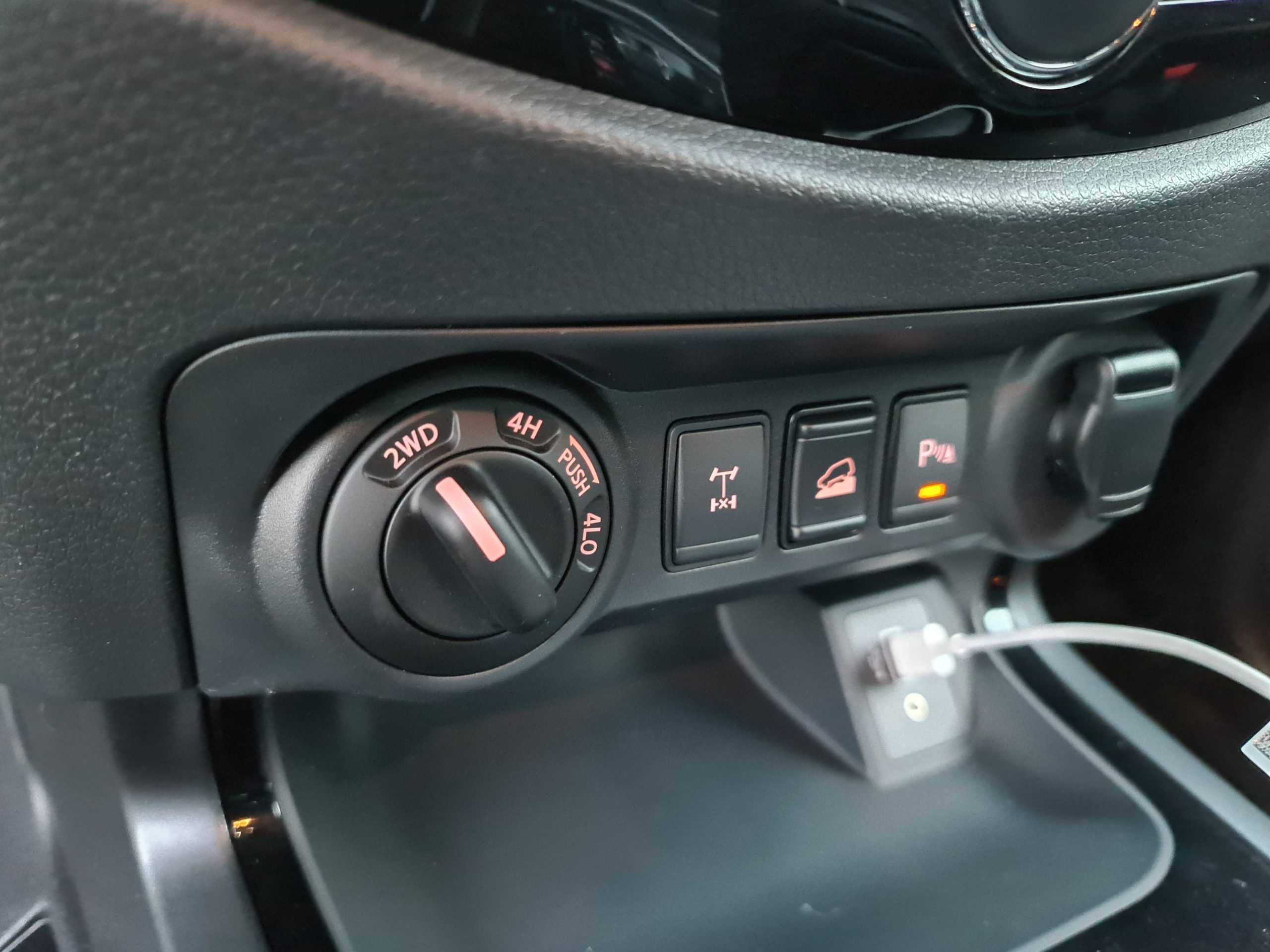 Abajo, mantiene un climatizador bi-zona, un comando giratorio para la selección de la tracción (modos 2H-4H-4L), con un bloqueo de diferencial trasero, control de descenso y desconexión del sensor de retroceso (quedo al debe el delantero).