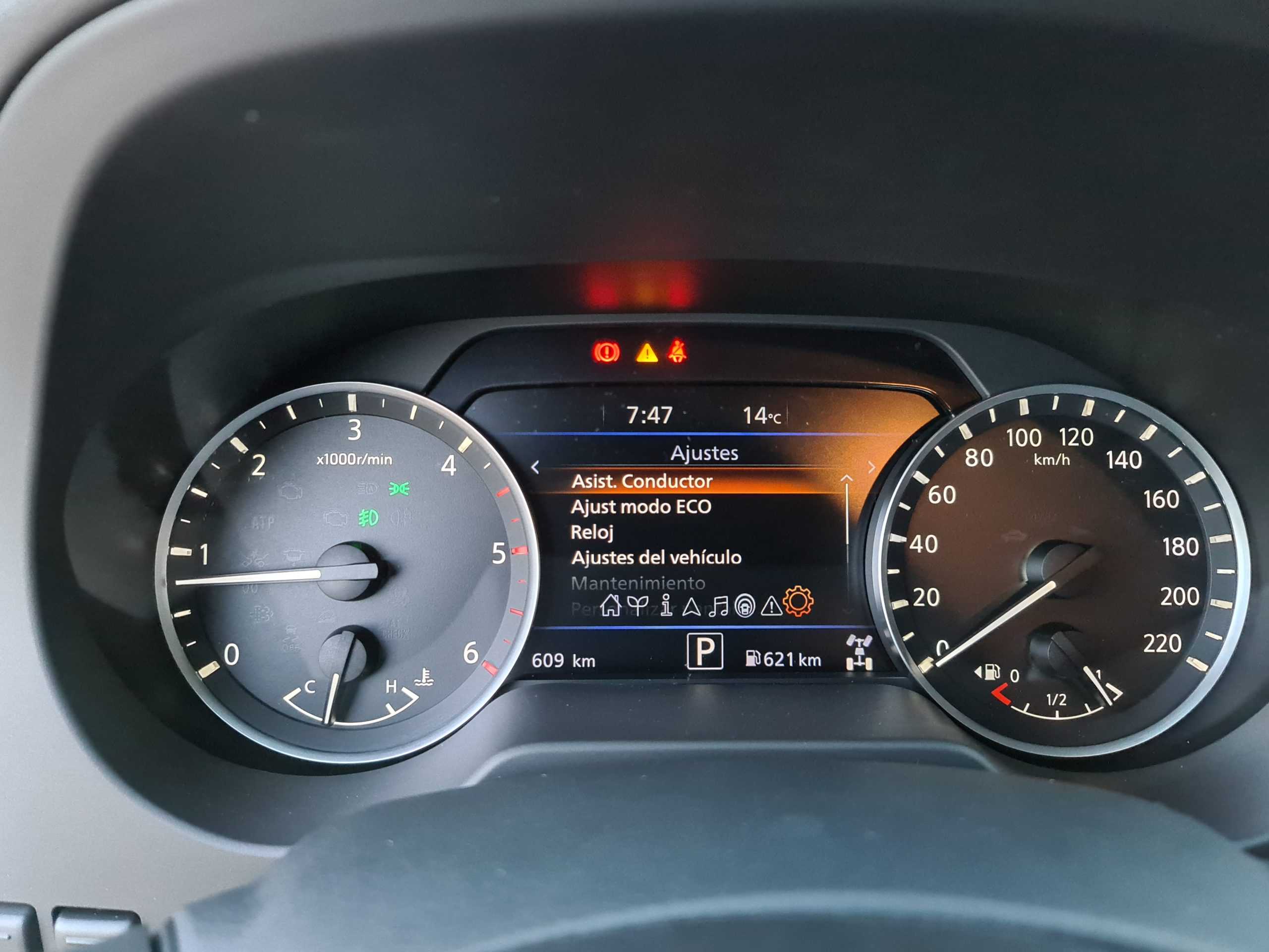 A la izquierda del volante, vemos algunos botones, el de desconexión del ESP, activación de la regeneración forzada y activación del sistema Nissan Intelligent Mobility, del que hablaremos más adelante y también supone una gran novedad.